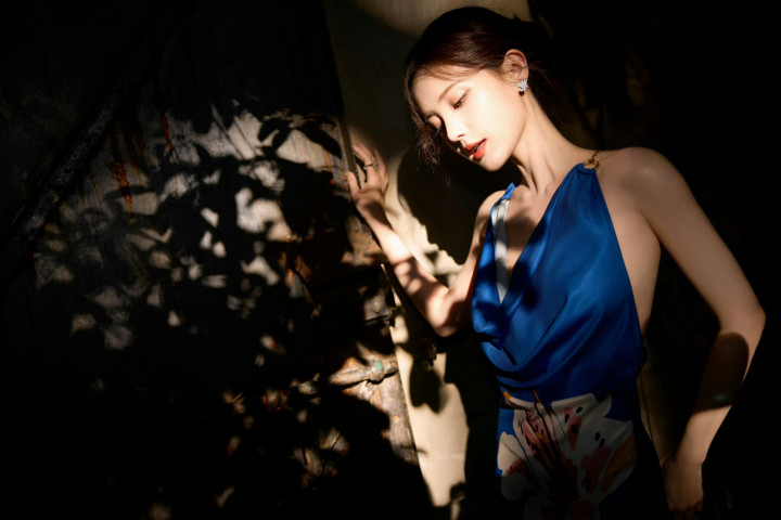李一桐绝美背影杀, 深V蓝裙惊艳亮相, 这谁能顶得住?