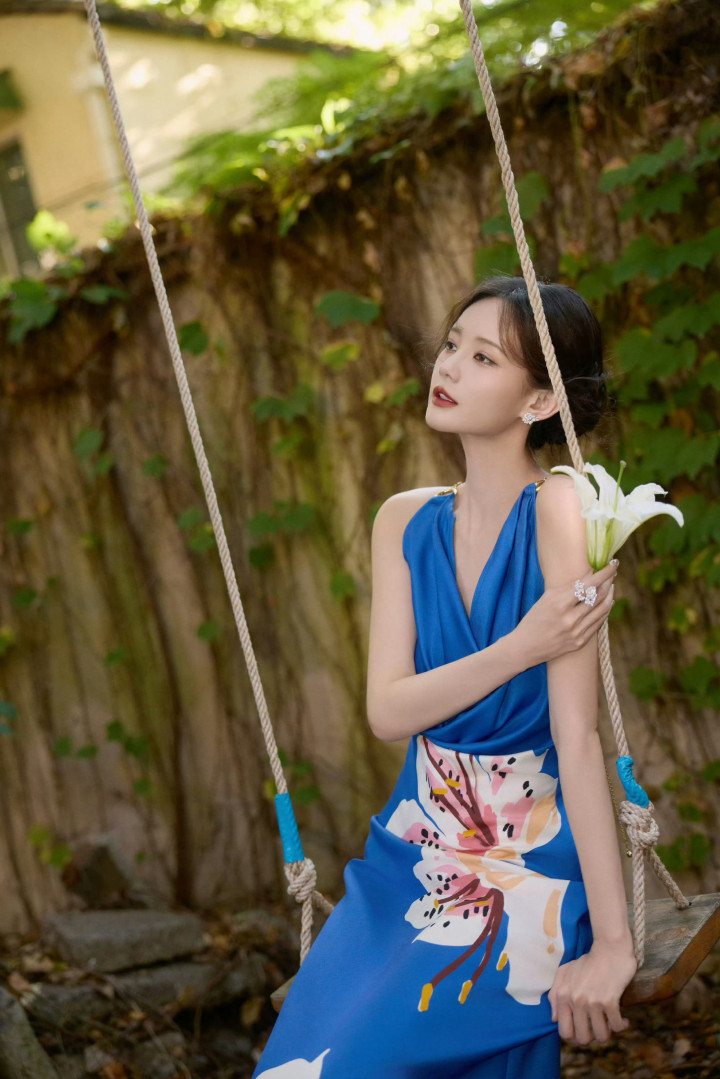李一桐绝美背影杀,深V蓝裙惊艳亮相,这谁能顶得住?
